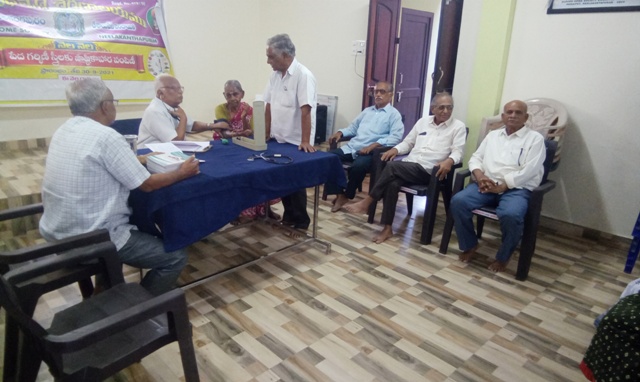 డాక్టర్ కె యస్ రామానూజమ్ గారు ఆశ్రమ వృద్ధులకు వైద్య పరీక్షలు నిర్వహించడం