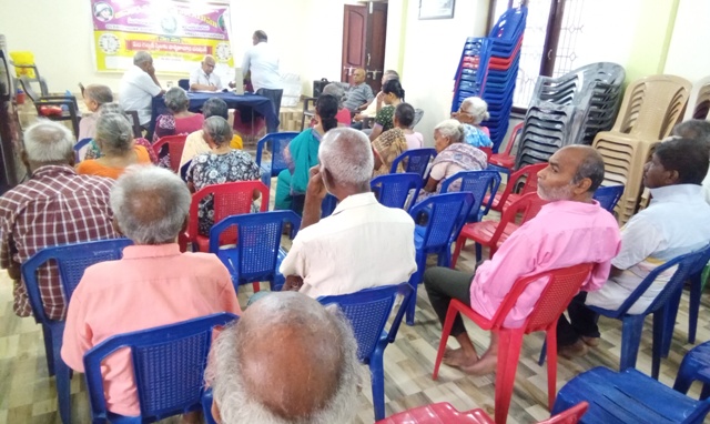 డాక్టర్ కె యస్ రామానూజమ్ గారు ఆశ్రమ వృద్ధులకు వైద్య పరీక్షలు నిర్వహించడం |