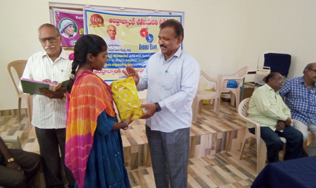 | Event Details | : | తే. 17/11/23 ఆంధ్రా బ్యాంక్ CENTENARY వార్షికోత్సవాల సందర్భంగా, ఆంధ్రా బ్యాంక్ రిటైర్డ్ ఎంప్లాయిస్ ఆశ్రమం లో ప్రముఖ వినీతస్త్రీలకు పౌష్టికాహార పంపిణీ |