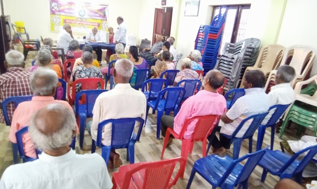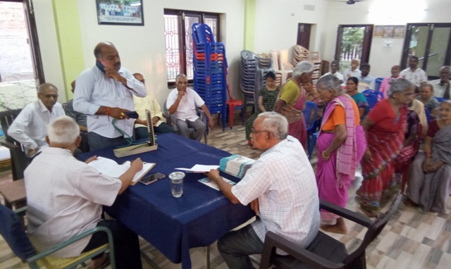 డాక్టర్ కె యస్ రామానూజమ్ గారు ఆశ్రమ వృద్ధులకు వైద్య పరీక్షలు నిర్వహించడం |
