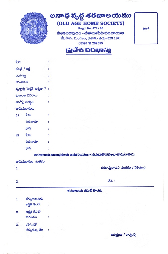 - People who desired to join the Ashramam need to obtain application form, fill out and submit the form to the committee.